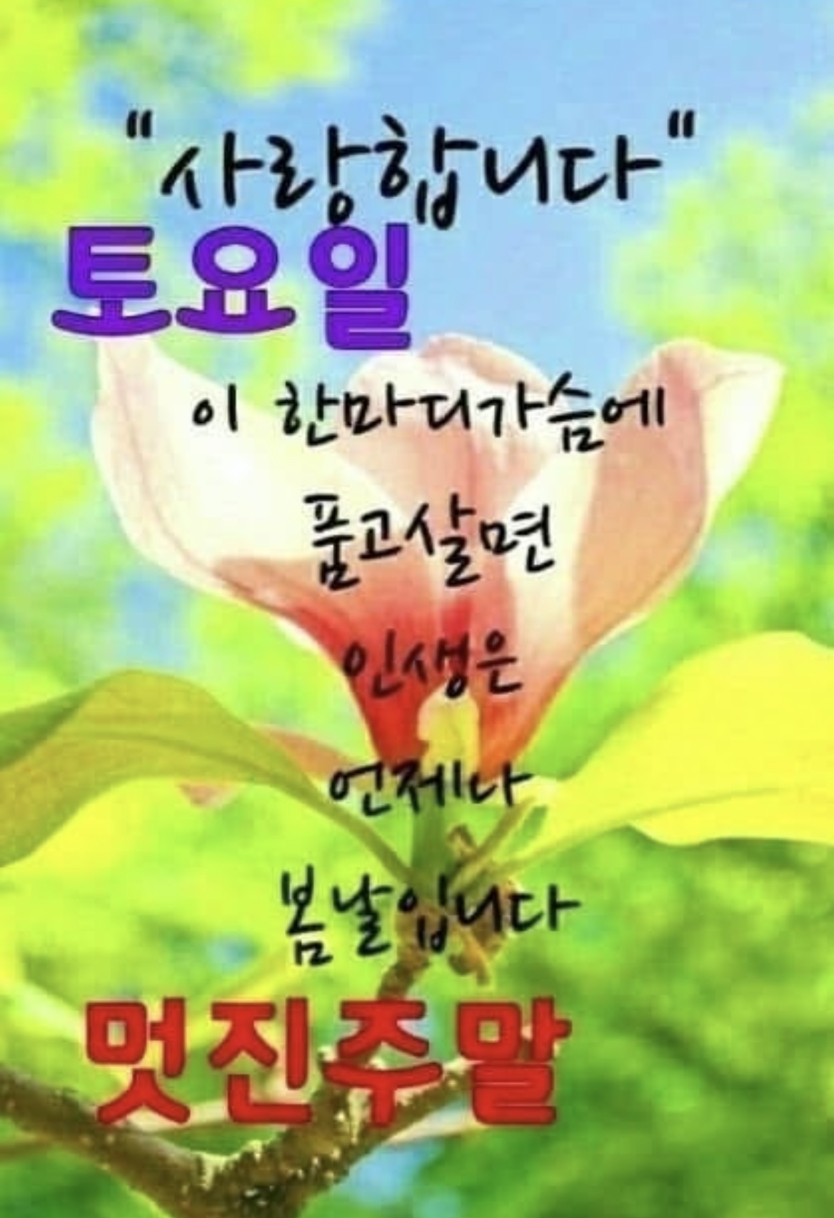 사랑합니다.이 짧은 한마디가 우리의 삶을 얼마나 따뜻하게 바꿀 수 있는지, 우리는 종종 잊고 살아갑니다. 바쁜 일상 속에서 마음을 표현하는 일은 점점 줄어들고, 감정은 쌓여만 가지만 정작 꺼내어 나누는 순간은 많지 않습니다. 그러나 단 한 번의 진심 어린 “사랑합니다”라는 말은, 얼어붙은 마음을 녹이고 관계를 회복시키는 놀라운 힘을 가지고 있습니다.토요일 아침, 한 주의 피로를 내려놓고 잠시 숨을 고르는 이 시간은 우리에게 아주 특별한 의미를 줍니다. 평일의 분주함에서 벗어나 나 자신과 가까운 사람들을 돌아볼 수 있는 여유가 생기는 날이기 때문입니다. 이때 가슴 속에 “사랑합니다”라는 한마디를 품고 하루를 시작해보세요. 세상을 바라보는 시선이 조금 더 부드러워지고, 사람들을 대하는 태도 또한 한층 따뜻해..